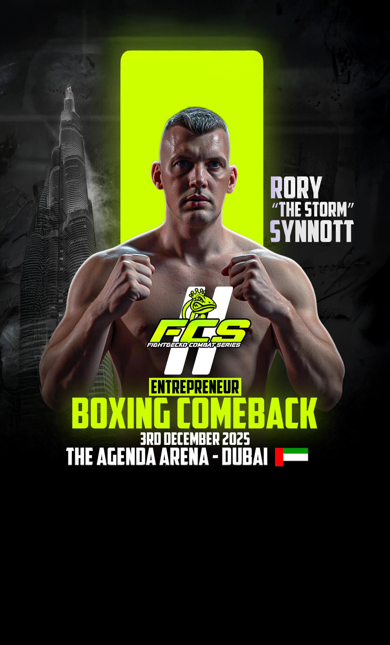 Known worldwide as a close friend of the Tate Brothers, a respected entrepreneur, and a rising force on YouTube & social media—Rory “The Storm” Synnott now steps back into the ring for his highly anticipated comeback.